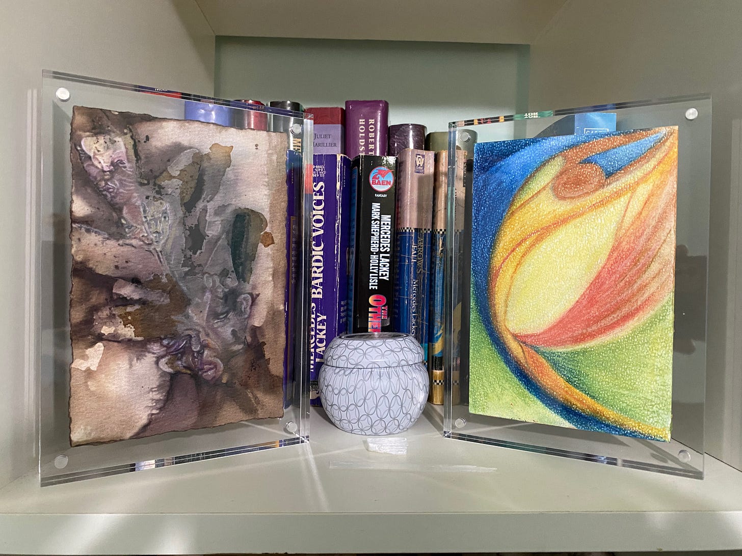 PS: Did you fall in love with these Fae of Decay? The framed original piece is available for purchase ($300 + tax and shipping). The 5” 7” magnetic acrylic frame stands independently on any flat surface and allows for both sides of the artwork to be visible. Choose which Fae to display on any given day 🙃
